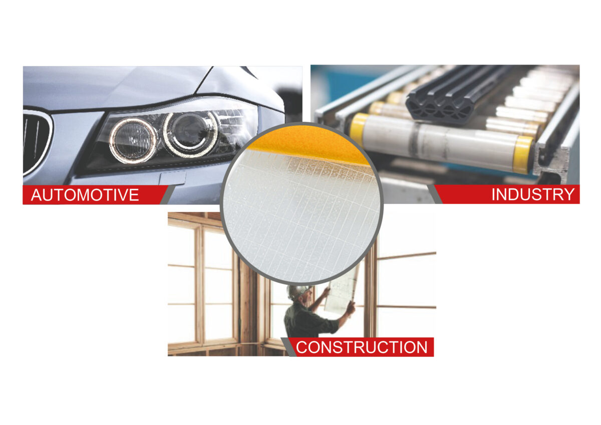 Solvent free, this double-sided scrim tape provides a high-performance bonding even on difficult surfaces (compact rubber, cellular foams…) which makes it perfectly adapted to many sectors’ constraints such as automotive, industry or construction. Beyond that, it also offers many other advantages: