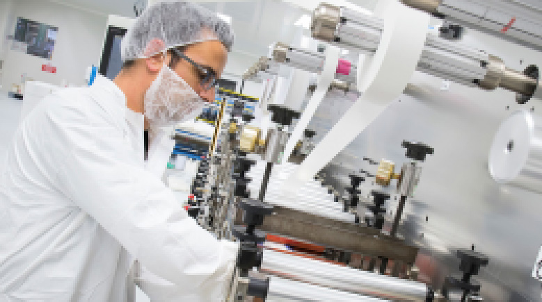 Committed to the medical adhesive tape field for several years, we have invested in manufacturing means specially dedicated to the production of adhesive tapes for medical devices. Within our ISO8 cleanroom (1,200m²), we provide you with different know-how able to meet all your needs for manufacturing your own medical die cut parts, from coating to die-cutting.