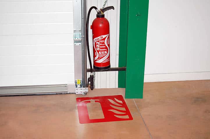 The Gergosign “Fire extinguisher” adhesive floor marking is available in red.